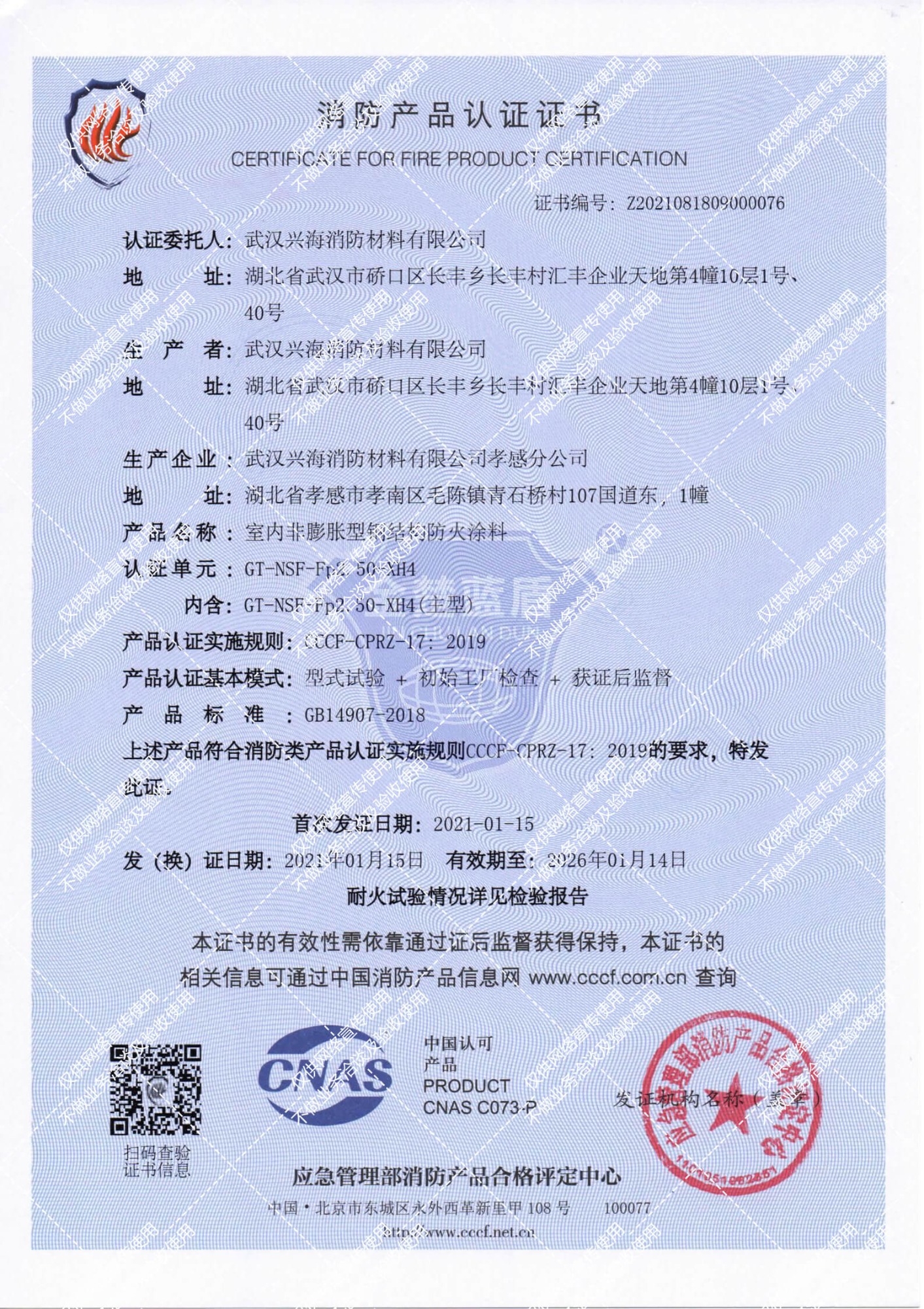 : 室內(nèi)膨脹型1小時鋼結(jié)構(gòu)防火涂料證書