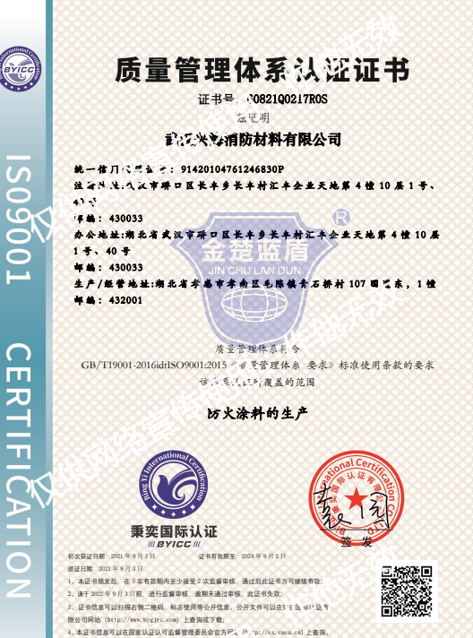 質(zhì)量體系認(rèn)證證書